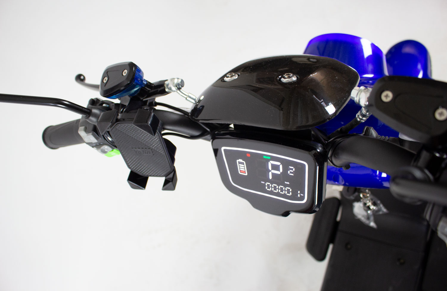 Digitale Geschwindigkeitsanzeige, Ladezustand und Kilometer Standanzeige. Wegfahrsperre, Zündschloss mit USB Ladebuchse und Bluetooth.