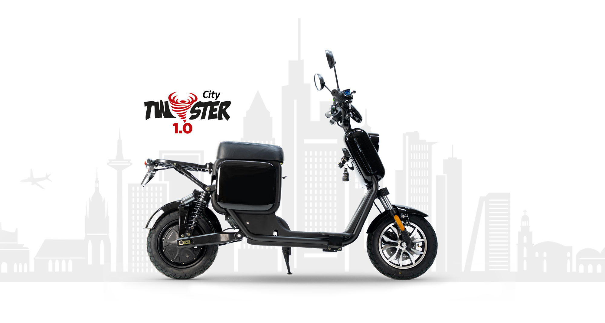 Der CityTwister 1.0 ist das schicke Einsteigermodell mit wartungsfreiem 1000 Watt-Motor und Druckluftfederung hinten. Mit Europäischer Straßenzulassung (EU COC)!