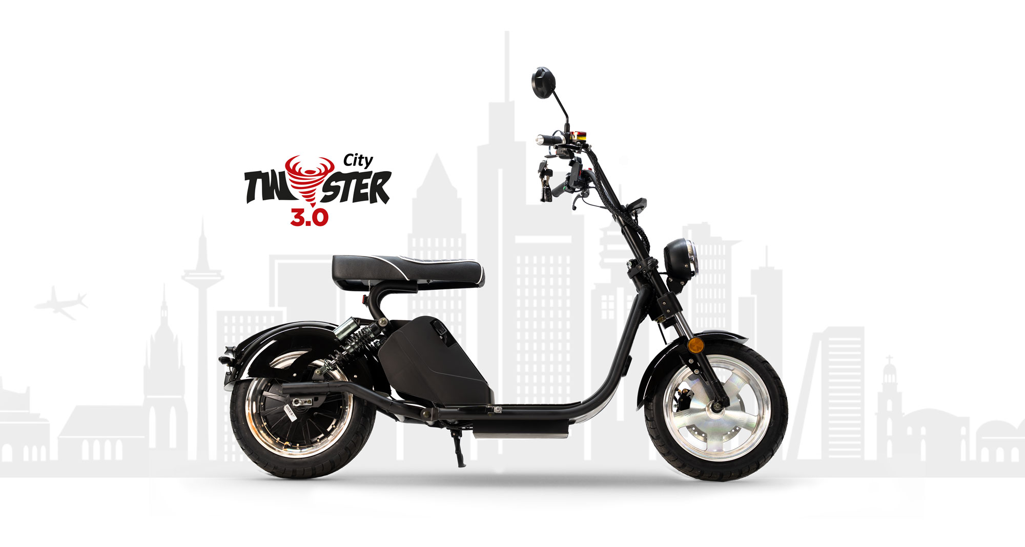 Der CityTwister 3.0 ist mit wartungsfreiem 1500 Watt-Motor und Druckluftfederung hinten ausgestattet. Mit Europäischer Straßenzulassung (EU COC)!